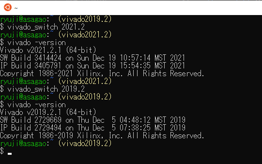これで VIVADO_ENV という環境変数を変えるだけでバージョンのスイッチができるはずです。