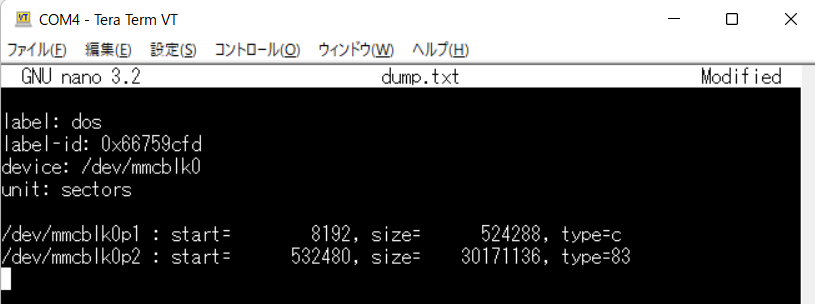sfdisk -d /dev/mmcblk0 > dump.txt nano dump.txt