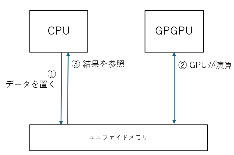 ユニファイドメモリは同じメモリに対してCPUもGPUも同じようにアクセスできますので、先に述べたメモリコピーが発生しません。