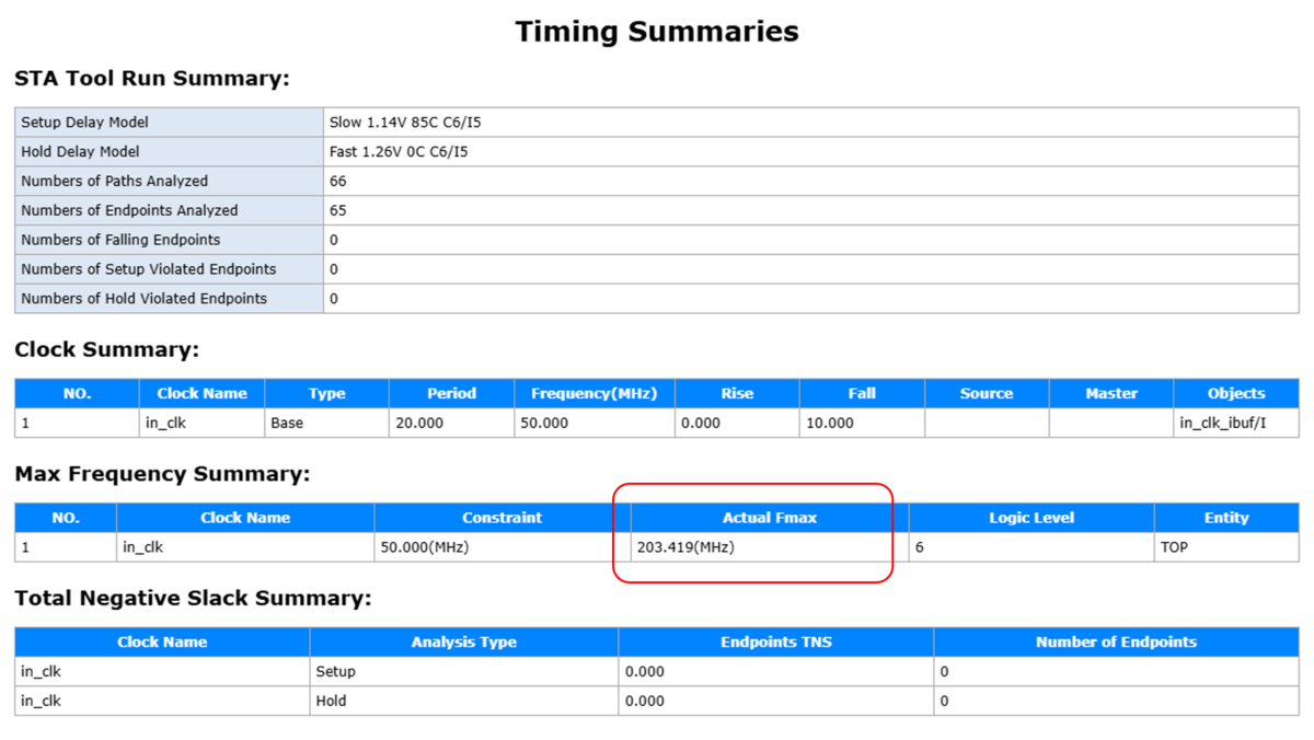 合成結果のレポートで fmax を探すとこのように出てくるようです。